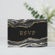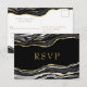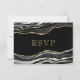 Black Marble Agate Gold Glitter Wedding RSVP Card