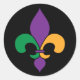 Black Mardi Gras Fleur de Lis Classic Round Sticker