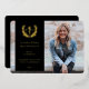 An elegant, modern photo announcement to celebrate those obtaining MD, Doctor of Medicine degrees. Featuring a full-bleed photo with a colour overlay and the Asclepius symbol (with the 'MD' abbreviation) surrounded by a laurel wreath in a foil colour of your choice. The template text for the graduate’s details is also foil pressed and customisable, so the font size, style and placement can be changed. The back features a solid coloured background and template text for a longer message. If you would prefer to include no text on the back, just delete it before ordering. If you would prefer a photo on the back of the card, delete both the coloured background and the template text and upload your own photo. The design is available in other colours, with a Caduceus symbol, with designs for specific qualifications (RN, DO etc) and in a non foil version - see my store and Collections.