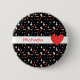 Cute personalise black button with a background of a medical equipment. From adhesive bandages, pills, bottles to blue stethoscopes. In the middle front there is a wide white line with the red text that you can personalise. On the right side of the text, there is an illustrated red heart. Customise further if you need to change the text font or size. You can delete the heart if necessary. Illustrated and designed by Patricia Alvarez.