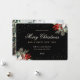 Elegant black botanical holiday card featuring conifer tree branches, holly, red berries and falling snow on a black background on the front and a photo at the back. Easily personalize this watercolor photo holiday card with your photo and text.