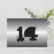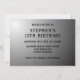 Black, metallic grunge teen boys birthday party invitation. Smaller size (or change it) cards with age on the front and party information on reverse in splatter cool fonts over gunmetal grey and black gradient.