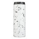 Small black and micro light grey glass chips Terrazzo pattern on a white background decorate this 12oz thermal tumbler. Easily change name with the Template provided; ample space to add text. Stainless body, plastic lid. Vacuum-sealed double walled construction retains temperature, hot or cold. See "About This Product" at side for more information and care.
