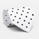 Stylish black mini polka dots form a classic geometric pattern on a white background.