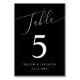 Minimal and elegant wedding table number featuring modern script text that says "Table" at the top on a black background.