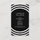 This minimalist vertical business card features a geometric design of round lines in white against a black background. It is ideal for various professions like Consultants, Stylists, Jewellery Designers, Bloggers, Event Planners, Wedding Coordinators etc; anyone that want a way to let the people they meet in real life know how to find them and their work/portfolio online and on social media.