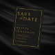 Make a bold and unforgettable statement with the "Black Minimalist Elegant Wedding Save the Date." This sleek design features a striking black background with simple, modern typography, creating a refined and stylish way to announce your upcoming wedding. Perfect for couples who love minimalist aesthetics with a touch of elegance, this Save the Date card is customisable with your wedding details, ensuring your guests mark their calendars for your special day in sophisticated fashion.