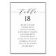 Customisable table number seating plan. It features a black whimsical script and classic typography. Personalise by adding your own details. This minimalist table seating plan is perfect for any weddings, baby showers, bridal showers, birthdays, and so much more.