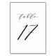 Table 17. Elegant table numbers card featuring black minimalist script. This black and white table number is perfect for weddings, graduation, baby showers, bridal showers and other events. Other number and colour are available.