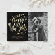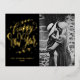Black Modern Calligraphy and Wreath New Year Photo Foil Holiday Postcard
