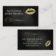 Black modern chic faux gold lips scissors business card