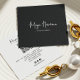 A sleek and stylish square business card featuring a solid and classic black background with your name or company name in an elegant signature script. Fully customisable to match your brand identity—edit the background colour, text, and logo effortlessly.