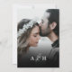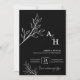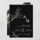 Black Modern Elegant Monogram Foliage Photo Invitation