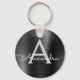 Black Modern Faux Stainless Steel Monogram Key Ring