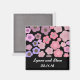 A simple yet elegant save the date. A black background featuring whimsical flowers in pink, rose and various shades of purple. Customise by adding names and wedding date.