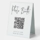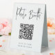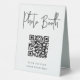 Make it easy for your wedding or event guests to download their photo booth pics with this QR code table tent sign. "Photo Booth" appears at the top, with brief instructions beneath. Enter the url for your pictures, and the QR code will update. Guests can scan the code with their phones to see or download their snaps.