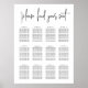 Wedding guest seating chart features your names in modern handwritten script lettering, with your wedding date and guest table assignments beneath. Space provided for up to 12 tables. "Please find your seat" or your choice of text appears at the top. Colorway: Ash, a soft black.
