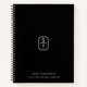 A modern minimalist personalised business notebook for anyone. A simple and professional way to introduce your business. Personalise with your text and monogram initials to create your own unique elegant black and white business notebook. Customise even further with a custom colour background or font.