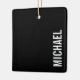 Modern Minimalist Design featuring personalised name in white modern bold sans serif font style on black background.