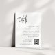 An all-purpose enclosure card for your wedding invitations, this petite Details card provides three custom text fields for your wedding details, website, and a QR code for RSVPs or additional information. Designed to match our Modern Handwritten Script wedding invitations. A beautiful typography based design with a minimalist feel, featuring modern ash black handwritten script and classic serif lettering.
