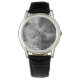 Classic and timeless, this Black Modern Script Father Establish Year with Red Heart custom watch is the perfect gift for any dad, especially a new dad, on Father's Dad. Change the photo to personalise this gift for your husband or son. The typography "2018" is changeable too to fit the year in which the giftee has become a father. Keeping track of the time just became more precious.