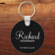 Black Modern Script Personalised Groomsman Key Ring