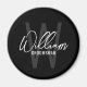 This design features personalised name in white modern handwriting script font style and monogram in grey modern sans serif font style as background, with title in white modern sans serif font style, on black background.