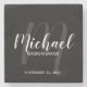 Black Modern Script Personalised Groomsmen Stone Coaster
