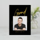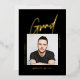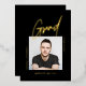 Celebrate your Graduate with this Photo Black Modern Simple Graduate Foil Invitation designed in black, with a central photo, "Grad" and details in Gold Foil. This clean invitation is perfect for a male graduate, your son graduating from college.