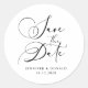 Black Modern Simple Round Save the Date sticker. Simplistic modern design. See the full collection in our store.