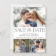 Announce your wedding date in style with our modern photo save the date magnets. The design features three of your engagement photos with "Save the Date" displayed in black modern serif and script fonts. Personalise the multi-photo save the date magnet by adding your names, wedding date, and wedding location.