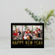 Happy New Year! Send your warm wishes this season with this customisable photo collage New Year postcard. It features simple typography and a black background. Personalise by adding your photos, names, year and other details. This gold foil New Year postcard is available in other colours and cardstock.
