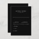 Simple Black Wedding RSVP Response Card. Dinner Options.