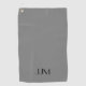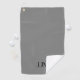 Golf towel with black three initial monogram or name on a medium grey background. Personalise with your three initial monogram or name using the easy template. Font colour, font style, and font size are customisable.