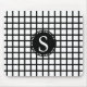 Black Monogram with White & Black Checks Stripes Mouse Mat