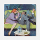 Artist: Lynn Buckham | A woman in a purple dress and a man in suit sitting on a green couch.