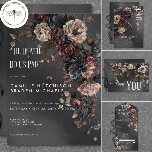 Black Moody Gothic Flowers & Mist WeddingDesigned by Kathe Santillo