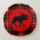 Black Moose, Red Plaid Cabin Round Cushion