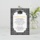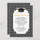 Graduation party invitation featuring a black and white polka dots pattern and decorative frame with mortar board hat on the top. Easy to customise - adjust text according to your requirements, change font, colour or size.