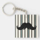 Black Moustache on Striped Pattern Key Ring