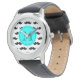 Black Moustache Pattern, Aqua Blue Monogram Watch