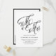 This customisable black and white wedding invitation postcard brings a perfect blend of rustic elegance and modern convenience. Featuring "Mr. and Mrs." in beautiful rustic calligraphy. Personalise by adding names, date, time, venue and other details.