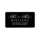 Elegant "Mr and Mrs" return address labels are perfect for a newly married couple. Features elegant calligraphy script and custom text you can personalise with your last name and address. Black background colour and white custom text can be customised.
