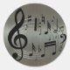 Black musical notes on aluminum background classic round sticker