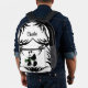 Black N White Giant Panda Eats Bamboo Name Printed Backpack