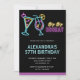 Black Neon Glow Cocktail Martini 57th birthday Invitation