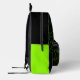 Black neon green spider web Halloween Monogram Printed Backpack. Monogram Personalise with your custom initial and name. Accessory Halloween inspired gift with Black neon green spider web. Elegant, cool and fun pattern. Spooky Halloween cobweb design on custom black.