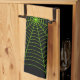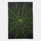 Black neon green spider web Halloween pattern Tea Towel