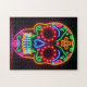 Black, neon sugar skull/day of the dead jigsaw puzzle