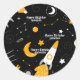 Black Night Sky Outer Space Rocket Birthday Classic Round Sticker